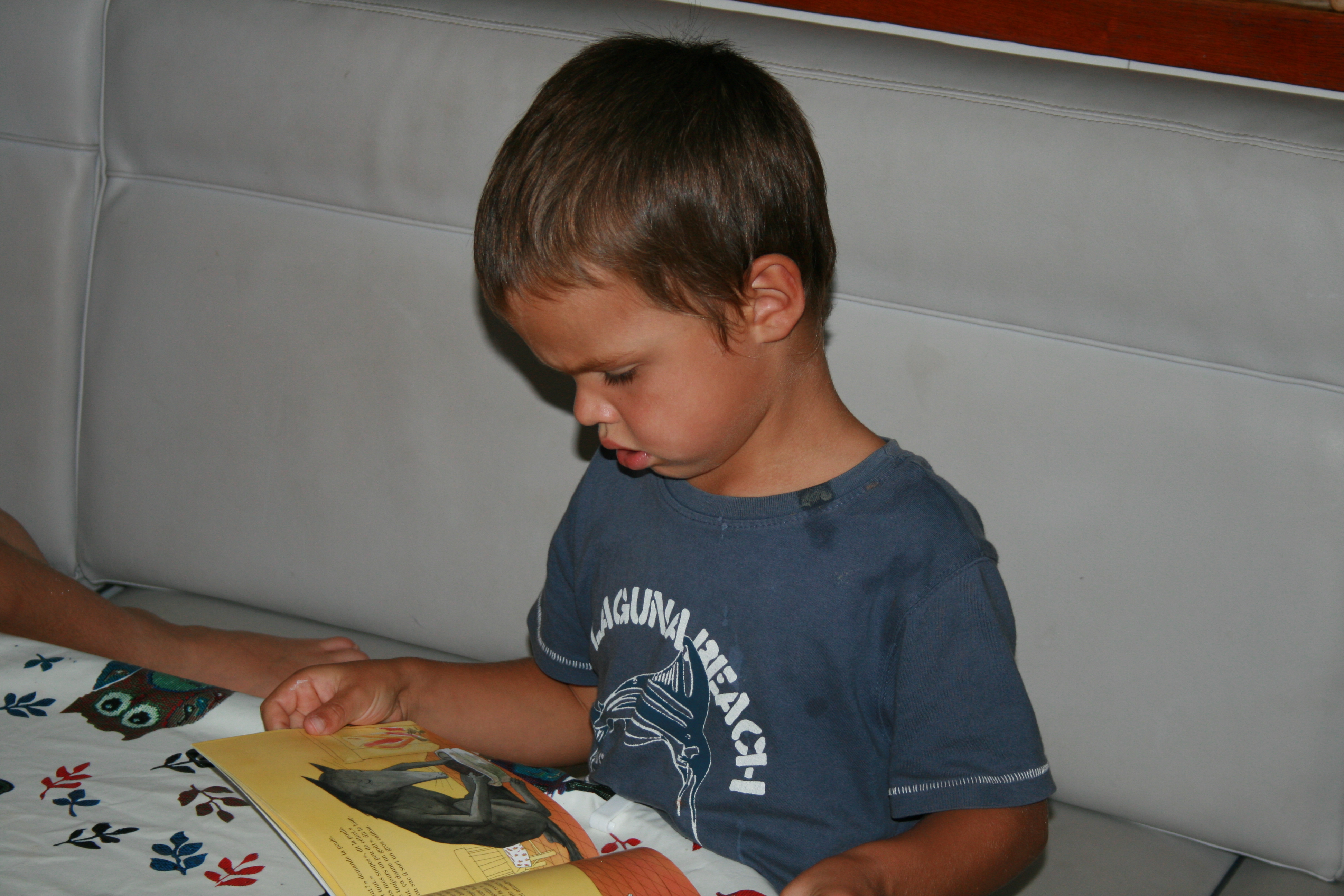 lecture pour les grands, jeux pour les petits. Gouter en famille puis